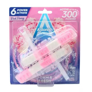 Astonish блоки для унітазу Pink Peony допомагають боротися з бактеріями та неприємними запахами, зберігаючи унітаз ідеально чистим.