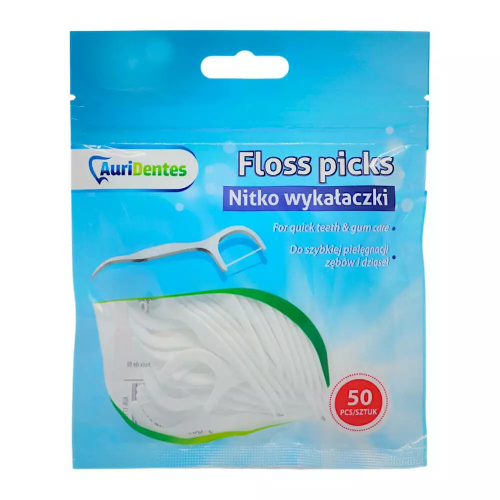 Auridentes зубні нитки-палочки 50 шт. - це ваш надійний помічник для підтримання чистоти і здоров'я порожнини рота, забезпечуючи ефективне і зручне очищення міжзубних проміжків.