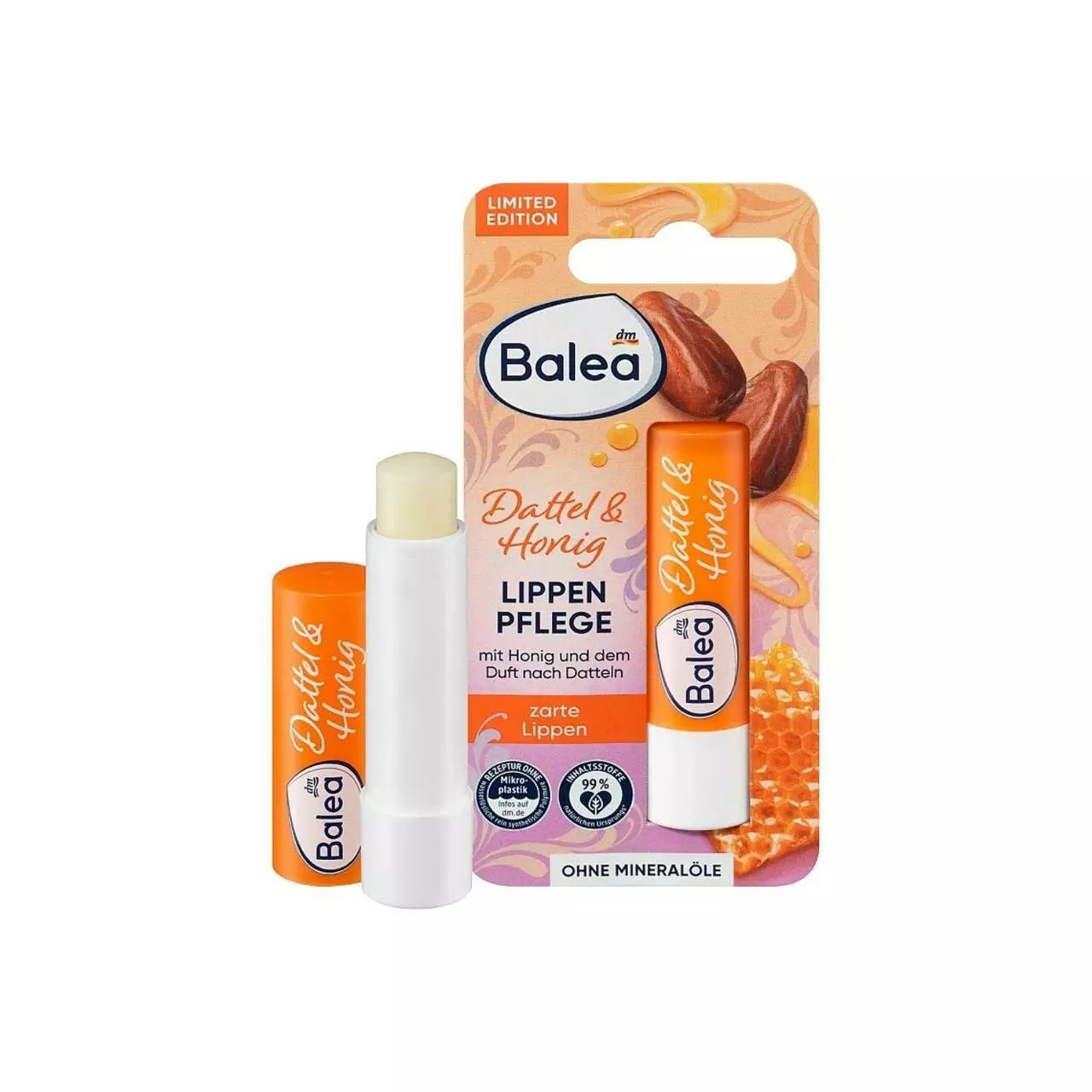 Застосовуйте бальзам для губ Balea Dattel Honig (Фінік та Мед) в будь-який час дня, щоб дарувати своїм губам природну доглянутість та комфорт.