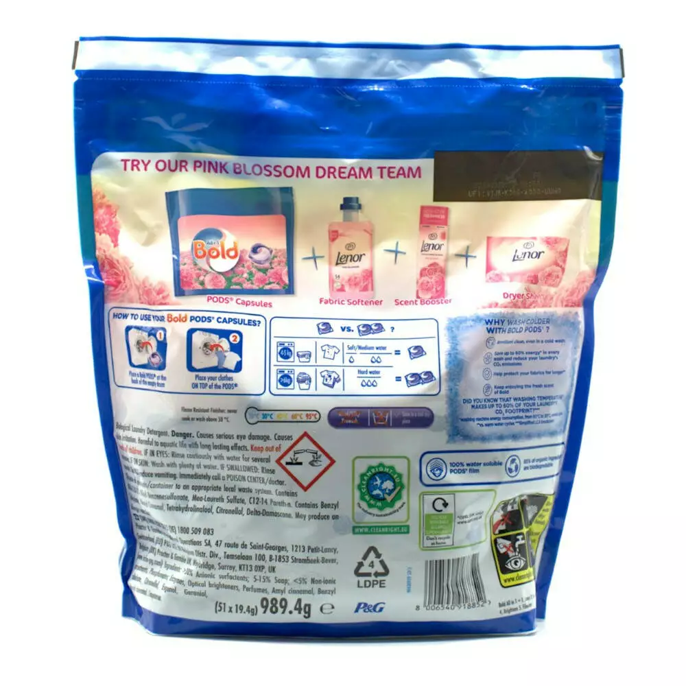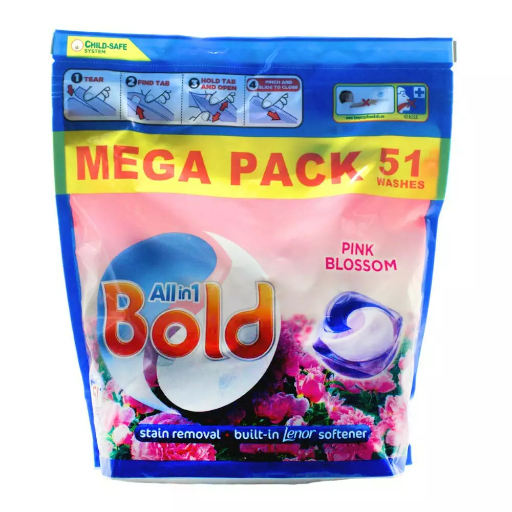 Bold All in 1 гель-капсули для прання + Lenor Pink Blossom (51 прання)
