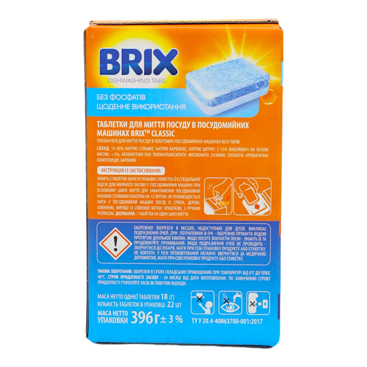 Таблетки для посудомийних машин Brix Classic у пакуванні по 22 штук