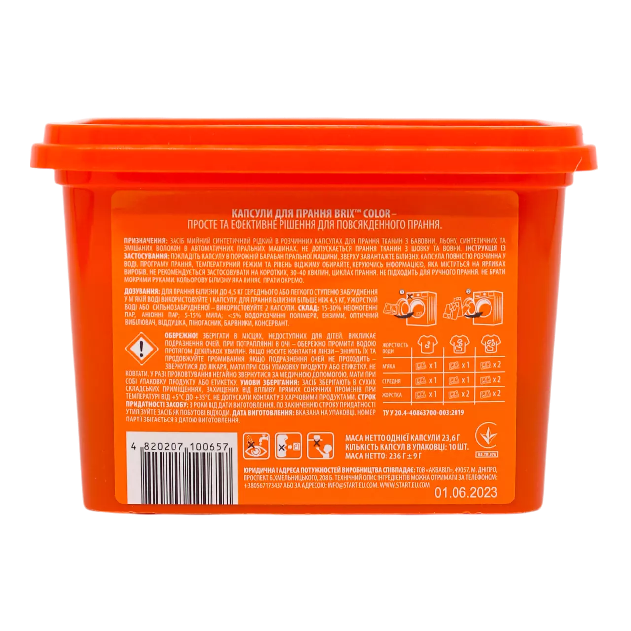 для збереження яскравості кольорового одягу під час прання. Капсули