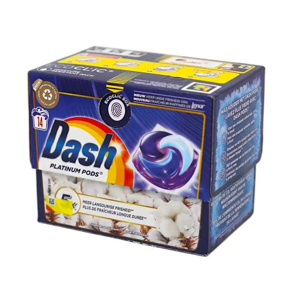 Dash Platinum Pods Гель-капсули для прання універсальні Cotton Freshness (14 прань)