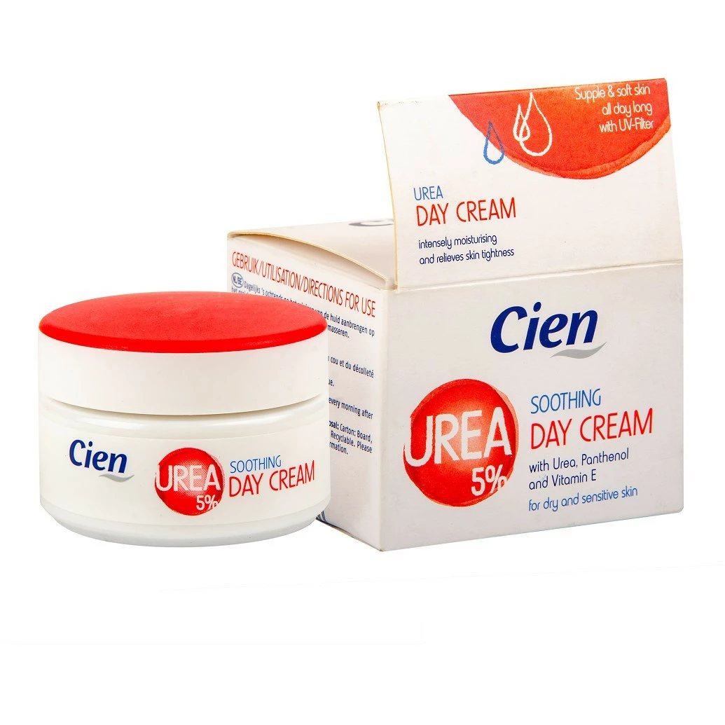 Денний крем розвиває свою максимальну ефективність дії у поєднанні з нічним кремом для обличчя Cien Urea 5%. Як природний зволожуючий фактор сечовина має високу вологозв'язуючу здатність, тим самим, протидіючи втраті шкірою вологи.
