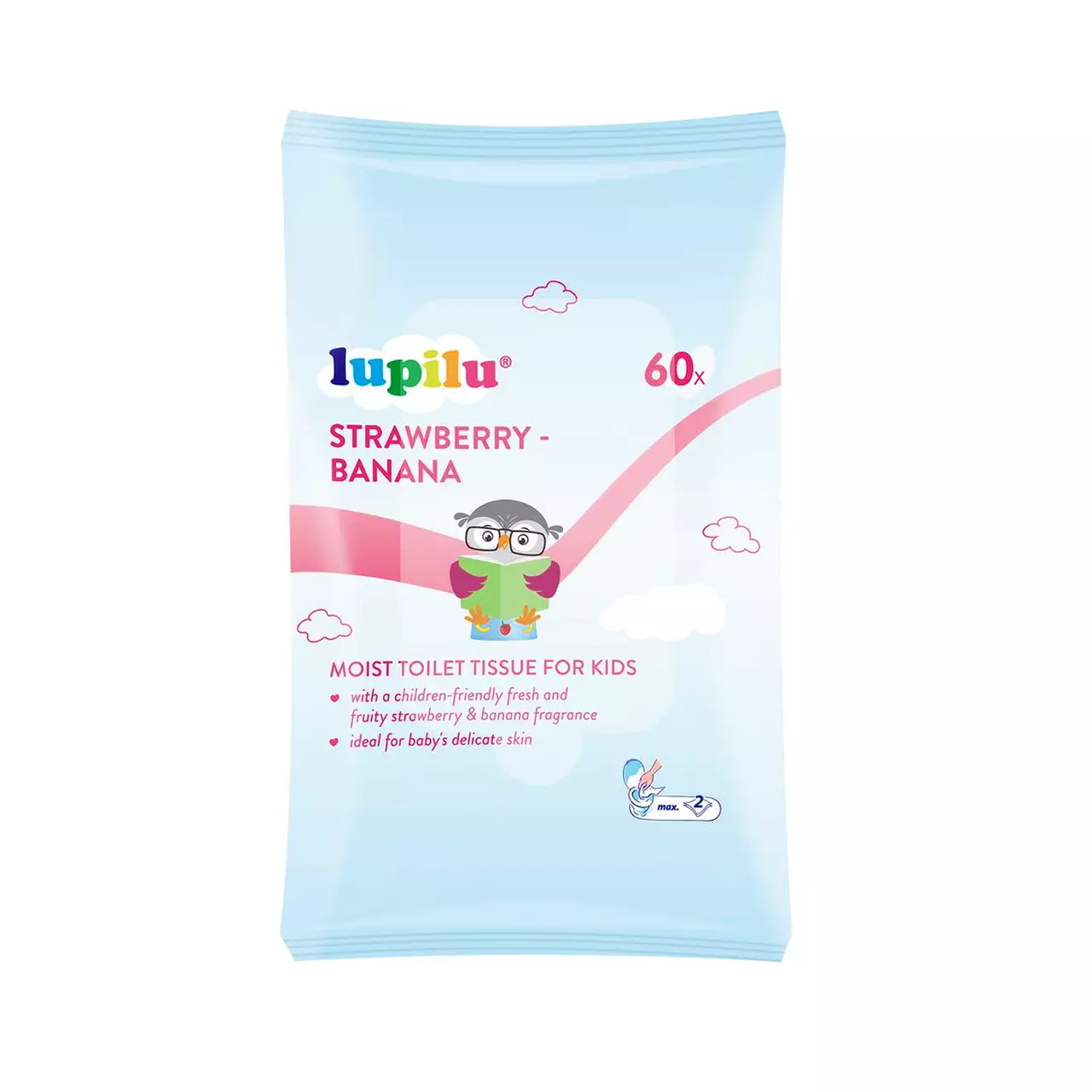Вологий туалетний папір зі свіжим полунично-банановим ароматом.