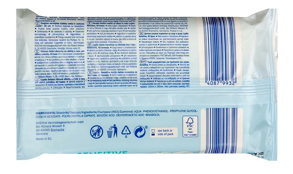 Дитячі вологі серветки Lupilu Sensitive 40 шт.