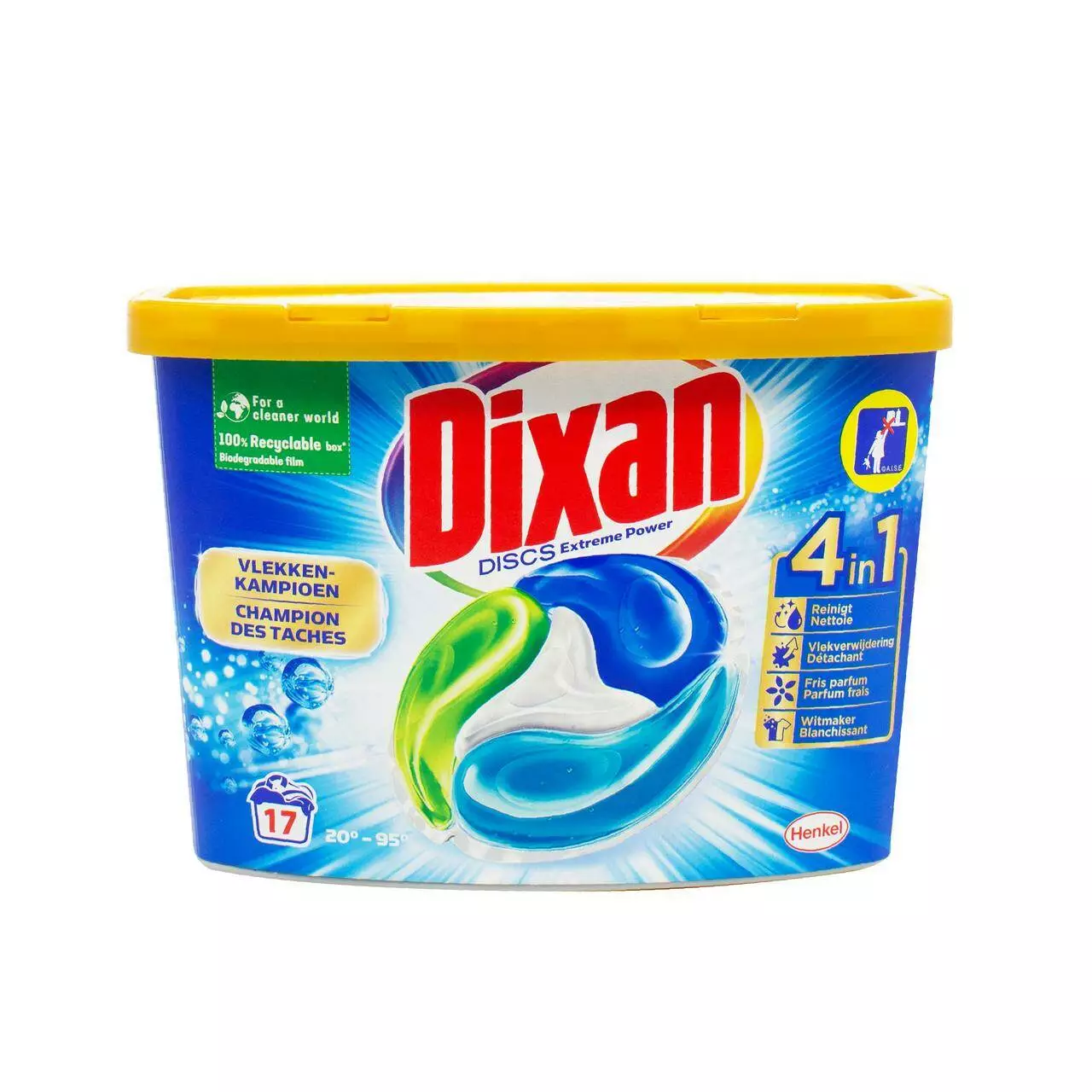 DIXAN гель-диски 4в1 Extreme Power забезпечують ефективне прання та захист вашого одягу, роблячи процес прання легким і зручним.