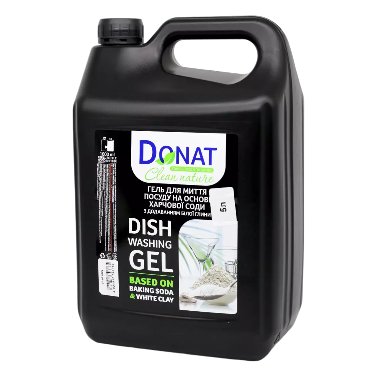 Donat Clean Nature Гель для миття посуду на основі харчової соди з білою глиною 5 л (каністра)