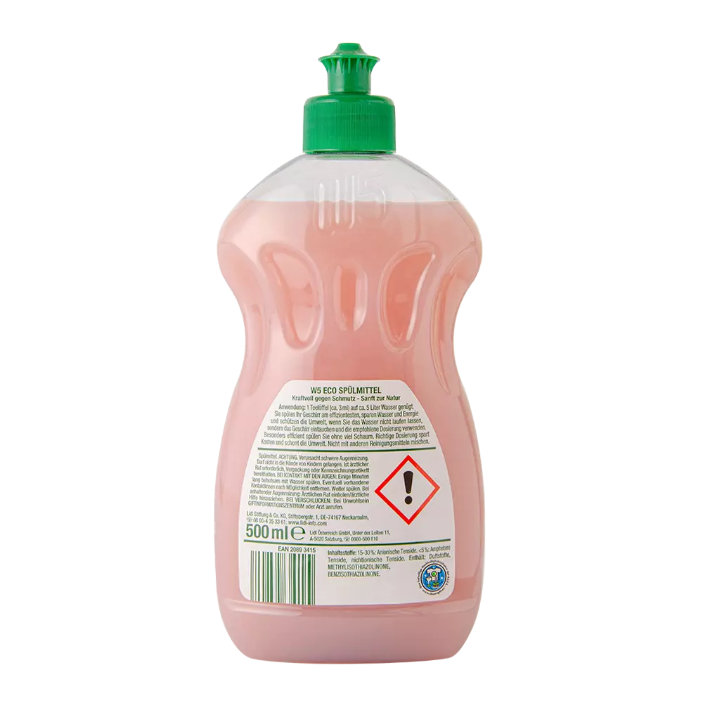 Бальзам-концентрат для посуду W5 Eco Spulmittel ефективно розщеплює жири, очищає посуд, столові прилади, скляні вироби від забруднень, завдяки наявності в складі продукту екстракту лимона. Економічний. Має приємний запах.