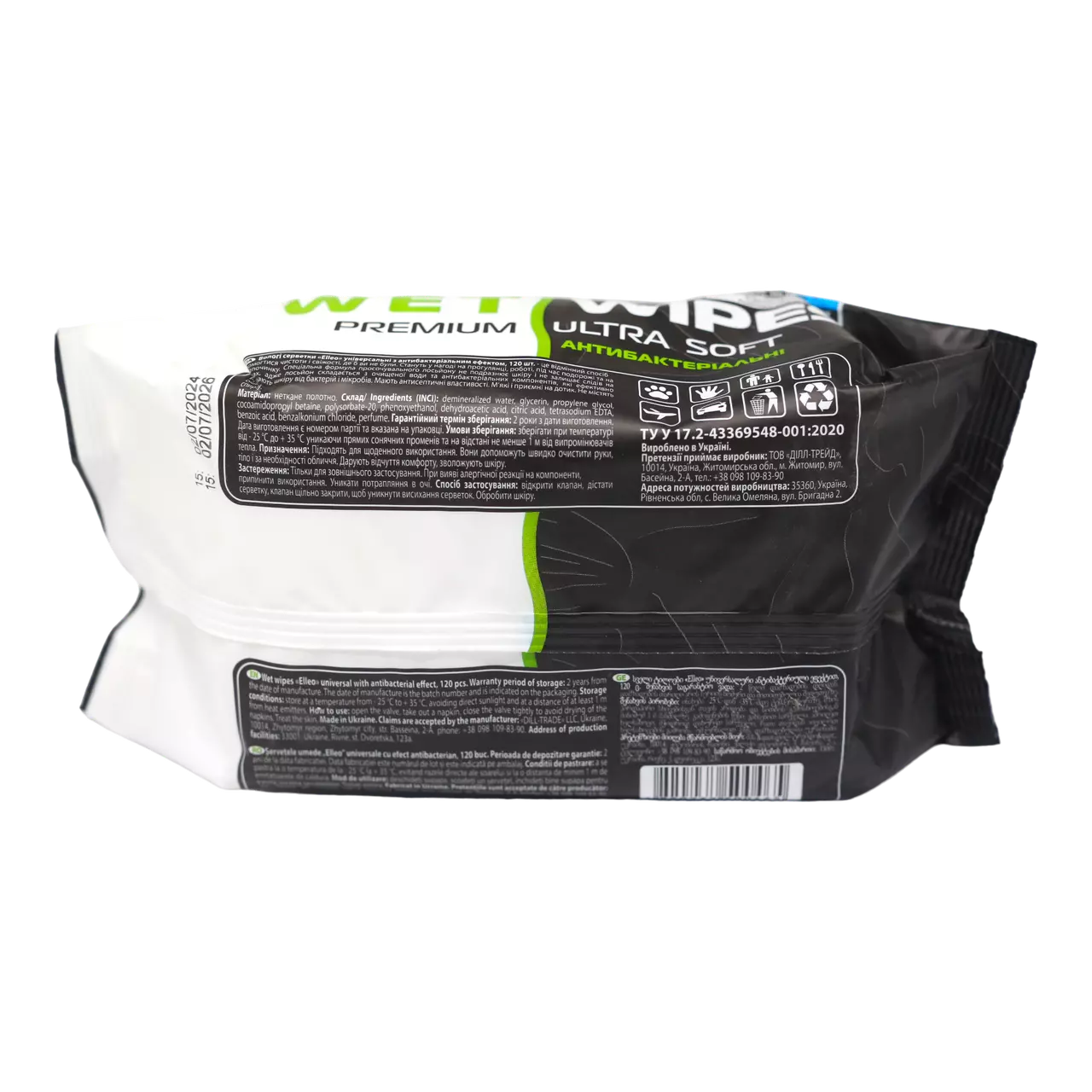 Elleo Вологі серветки антибактеріальні універсальні 120 шт - незамінний помічник для чистоти та гігієни.