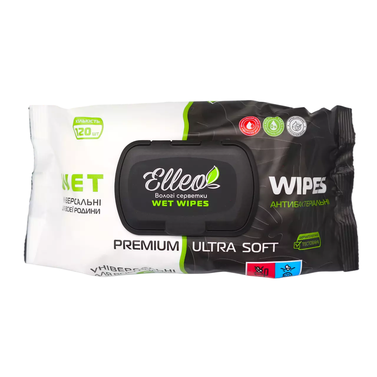 Elleo Вологі серветки антибактеріальні універсальні 120 шт - це