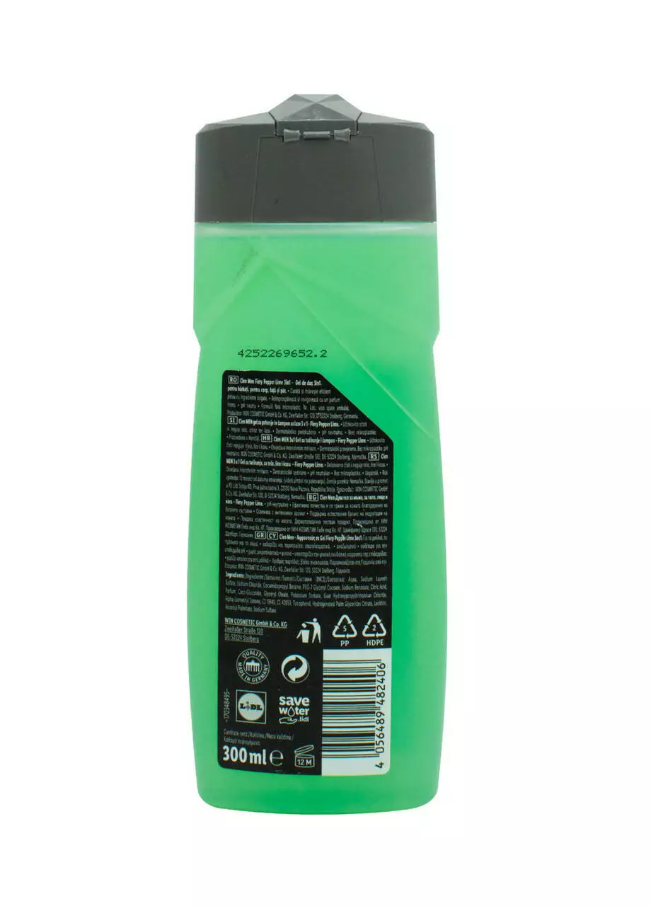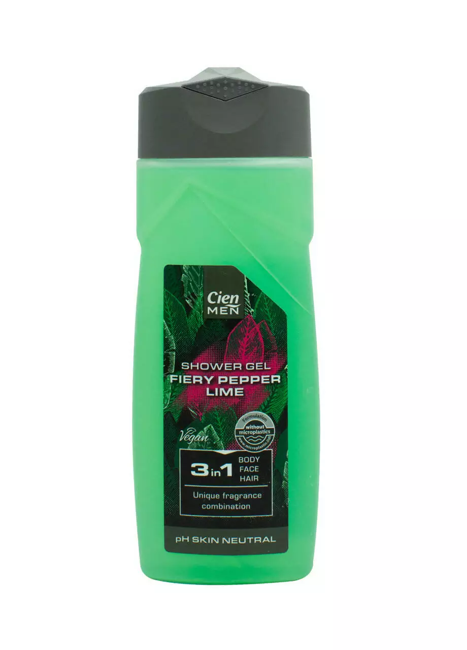 Чоловічий гель для душу Cien Men Fiery Pepper Lime 3в1 - засіб для миття тіла. волосся та обличчя. З нейтральною миючою формулою pH та деревним ароматом з нотами червоного перцю та лимона. Спеціально розроблений склад гелю для душу ніжно очищає та живить завдяки вмісту спеціальних інгредієнтів.
