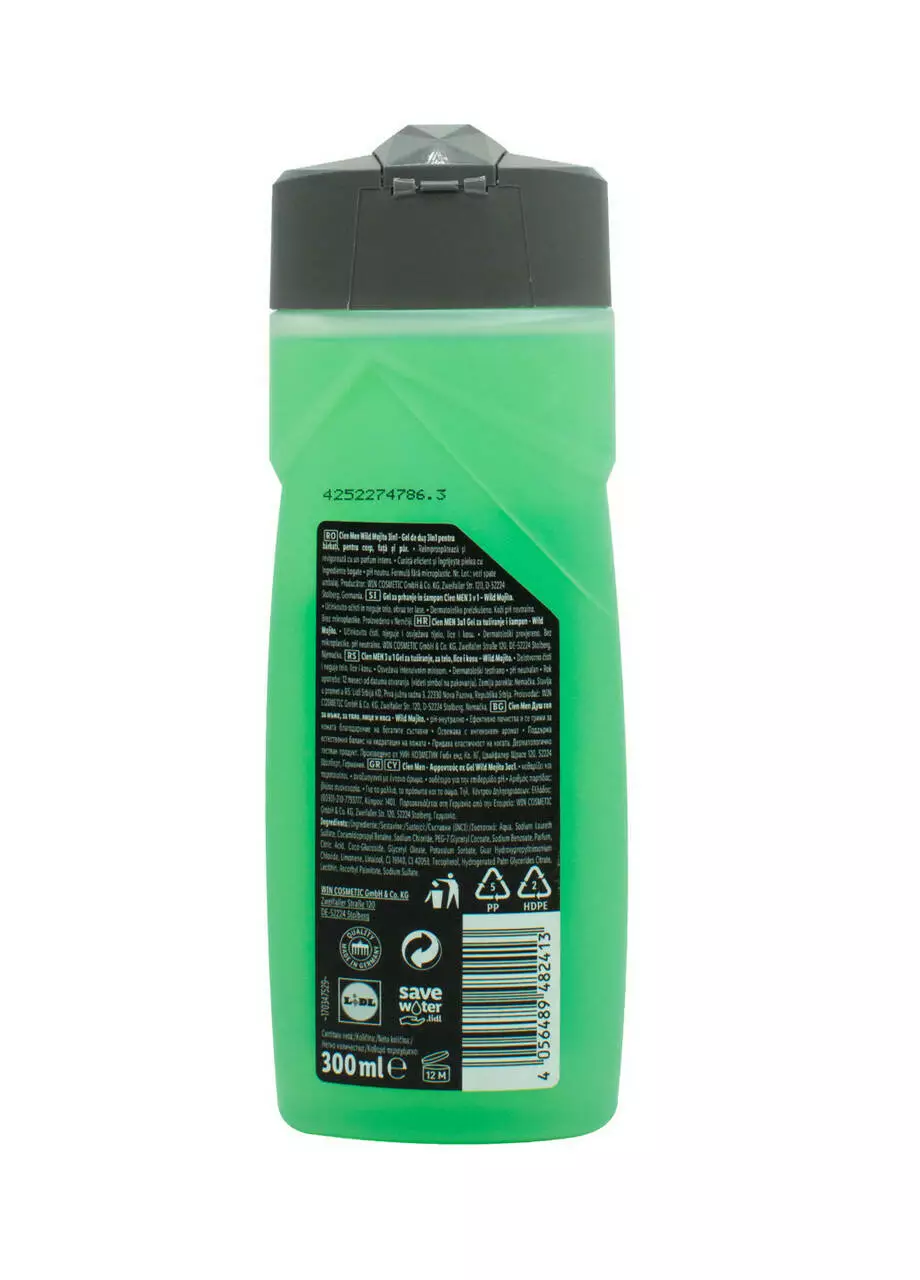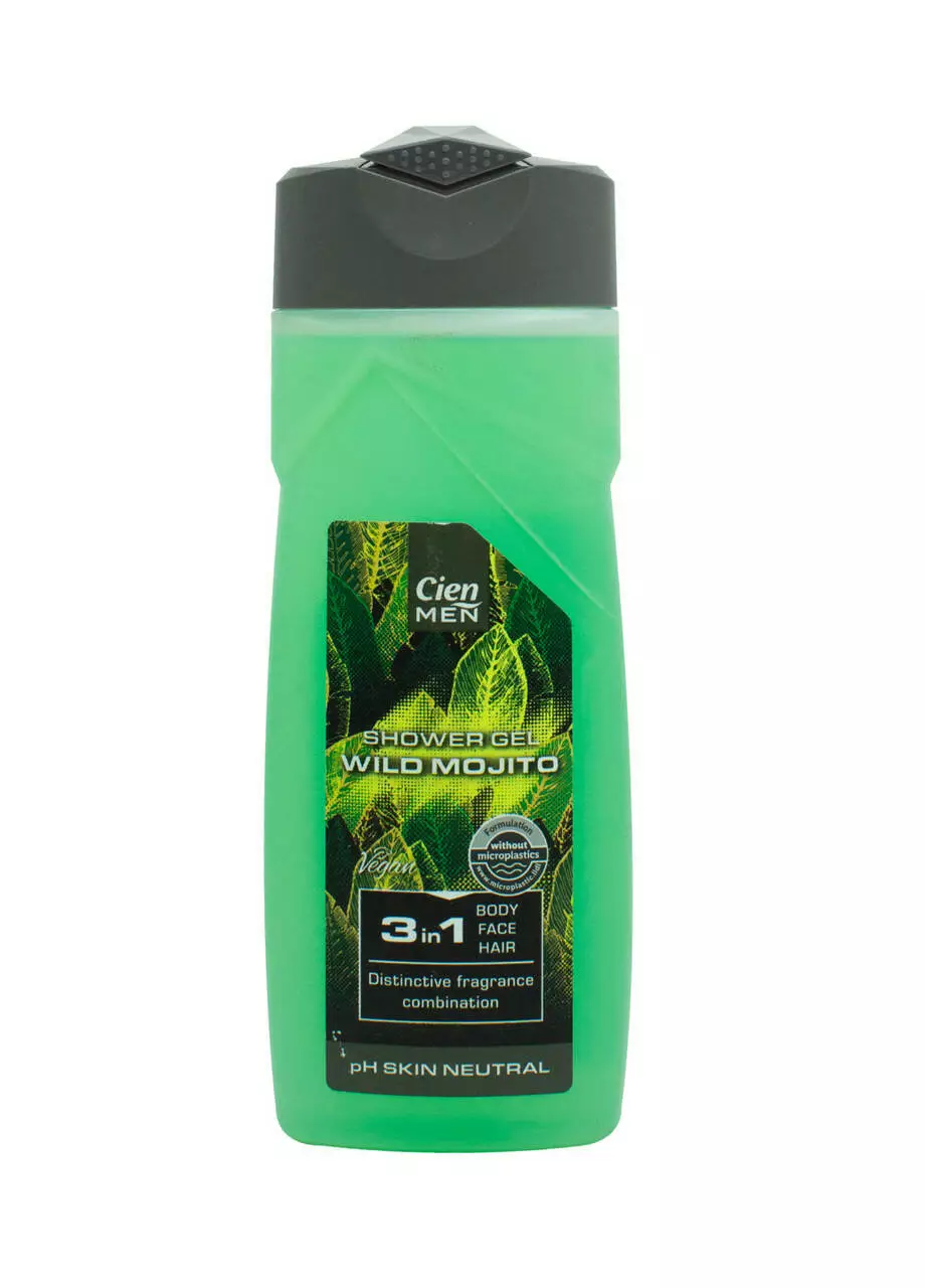 Чоловічий гель для душу Cien Men Wild Mojito 3в1 - засіб для миття тіла. волосся та обличчя. З нейтральною миючою формулою pH та освіжаючим ароматом. Спеціально розроблений склад гелю для душу ніжно очищає та живить завдяки вмісту спеціальних інгредієнтів.