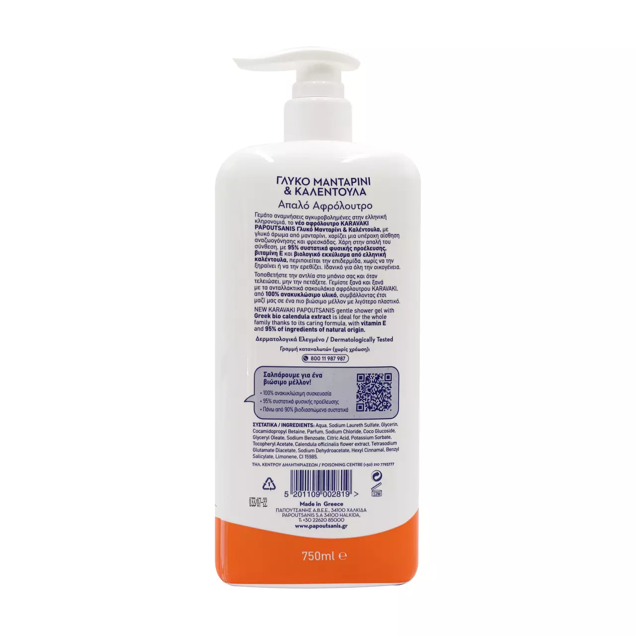 Повний спогадів, пов'язаних з грецькою спадщиною, новий гель для душу KARAVAKI PAPOUTSANIS Sweet Mandarin & Calendula бадьорить і дає чудове відчуття омолодження та свіжості.