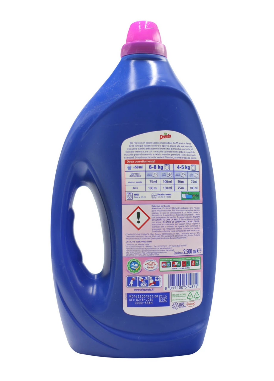З Bio Presto Color немає неможливого бруду: завдяки своїй формулі він ефективно видаляє всі види плям, навіть найстійкіші та найстрашніші. Ідеально підходить для кольорового одягу, зберігає інтенсивність кольорів. Блискуче чистий і бездоганний!