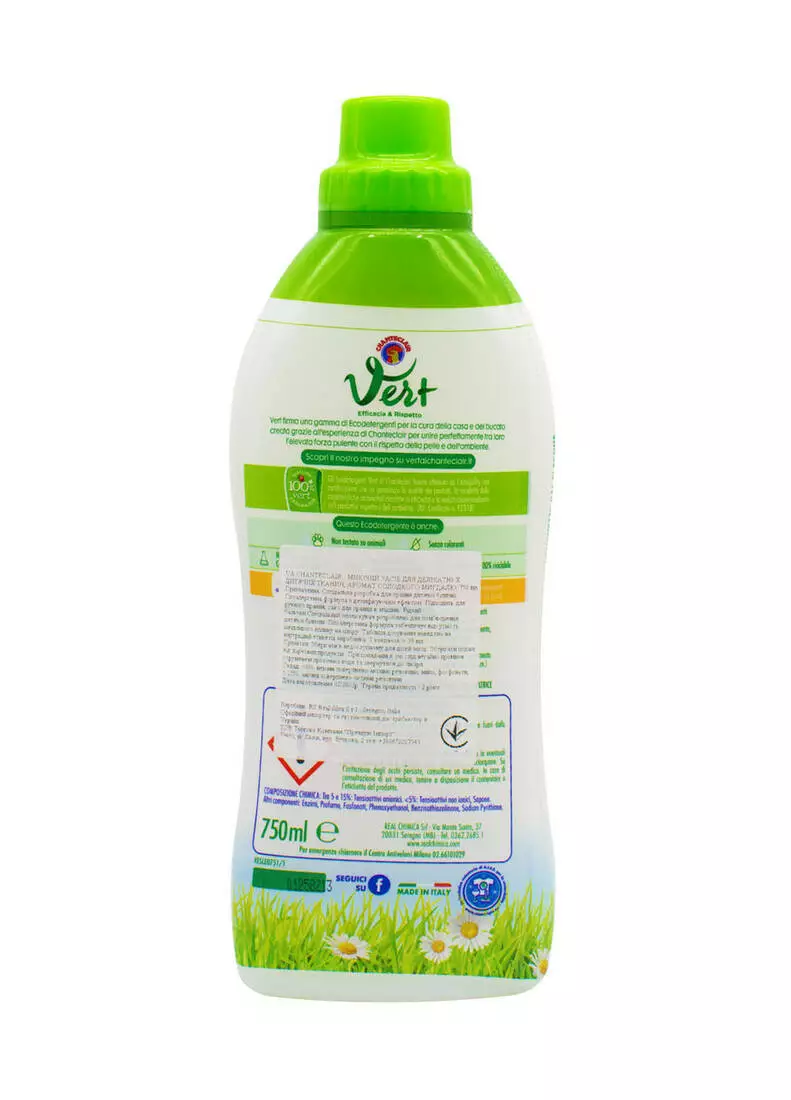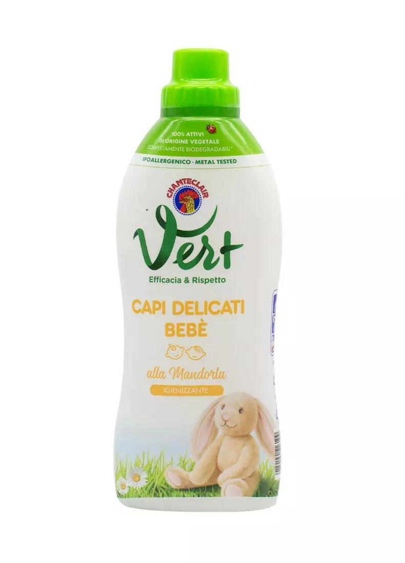 Chante Clair Vert Bebe ідеально підходить для прання речей немовлят. Збагачений вівсяним молоком, компонентом, відомим своїми заспокійливими і зволожуючими властивостями, він забезпечує видалення типових дитячих плям. Підходить як для ручного, так і для машинного прання. Призначений для прання всіх видів тканин, включаючи делікатні тканини, такі як бавовна і шерсть.