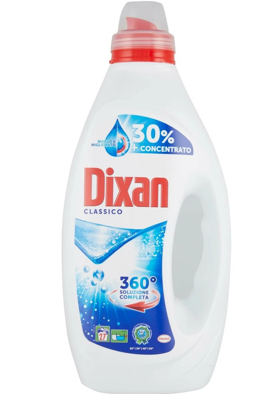 Рідкий Безфосфатний пральний порошок Dixan з Італії, завдяки своїй гелевою формі і спеціальною формулою cold zyme, порошок Dixan відпирає найскладніші забруднення вже при температурі 15 С, глибоко проникають в місця забруднення. Dixan містить речовини, що захищають деталі пральної машини від накипу. Особливо рекомендується використовувати для тих речей, які необхідно прати в холодній воді, такі як синтетичні тканини, пуховики і т.д. Порошок Dixan не містить фосфатів, тому підходить для людей з чутливою шкірою, а не викликає алергії, і для прання дитячих речей. Після прання білизна чиста, м'який і має дуже приємний запах