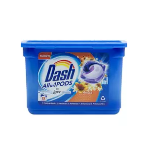 Універсальні капсули Dash All-in-1 з кондиціонером-ополіскувачем Lenor призначені для прання білих та кольорових тканин з натуральних, штучних і синтетичних волокон. Застосовуються для всіх типів пральних машин. Гелеві капсули Dash забезпечують чудовий результат прання, ретельно очищають, захищають колір, видаляють бруд і залишають тільки легкий аромат амбри і сяючу чистоту. Завдяки багатокамерній структурі компоненти, що входять до складу засобу, з'єднуються тільки тоді коли починається процес прання, що забезпечує відмінний результат.