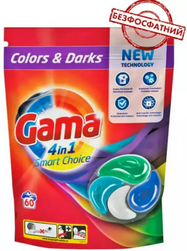 Капсули для прання Gama 4в1 Colors and Black – це гелеві капсули,