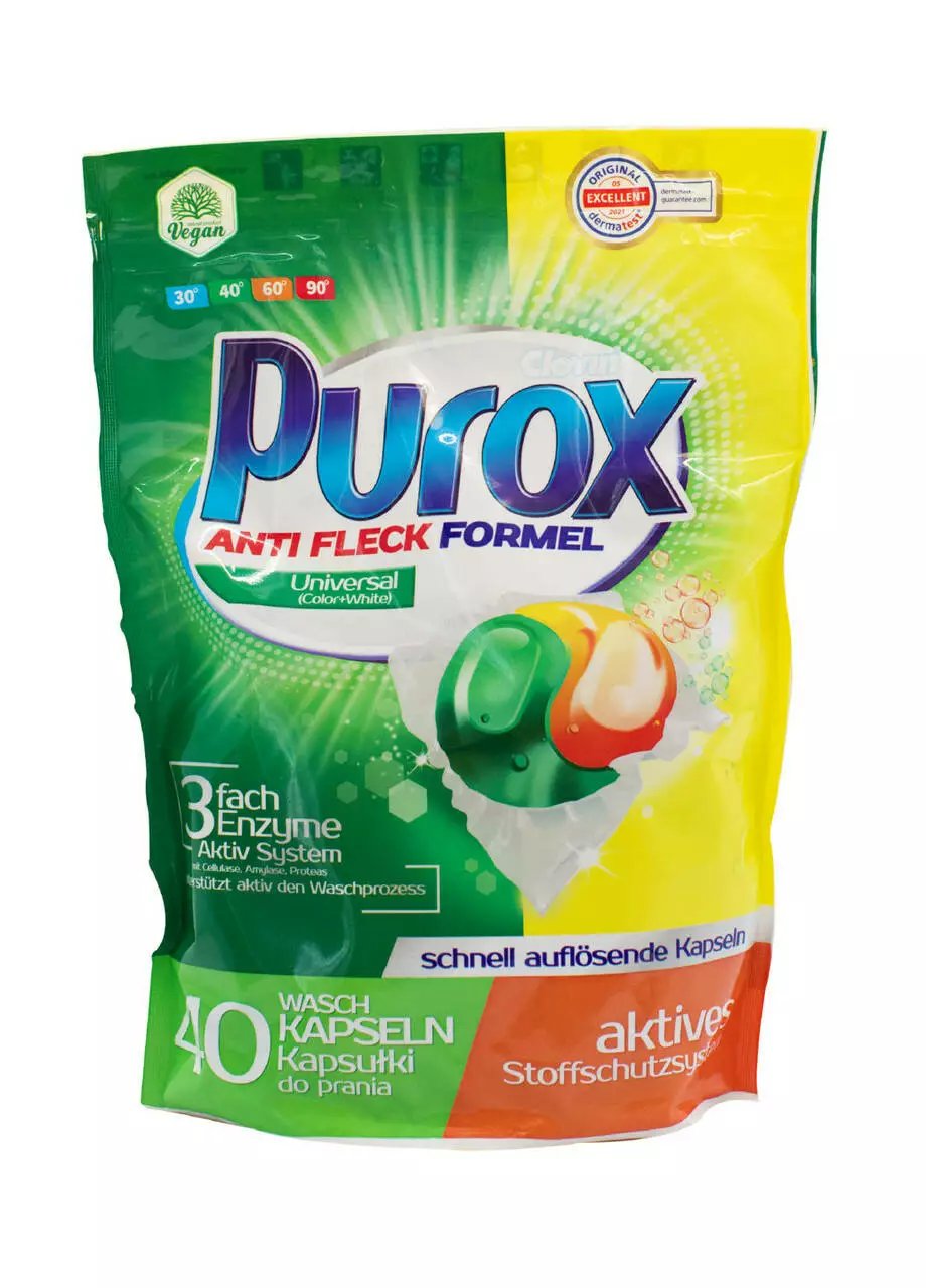Purox Universal гелеві капсули для прання з формулою проти плям - це інноваційний продукт для прання.