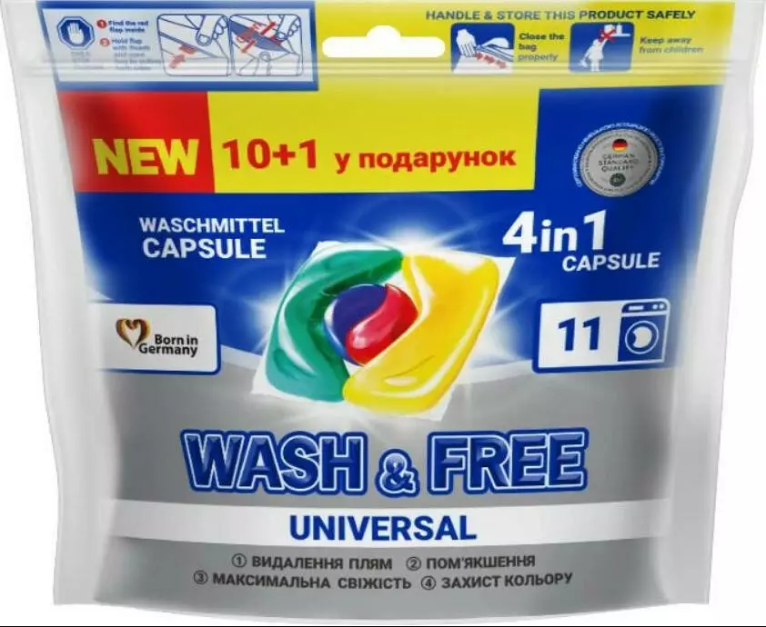 Гель-капсули для прання WASH & FREE 10+1 шт