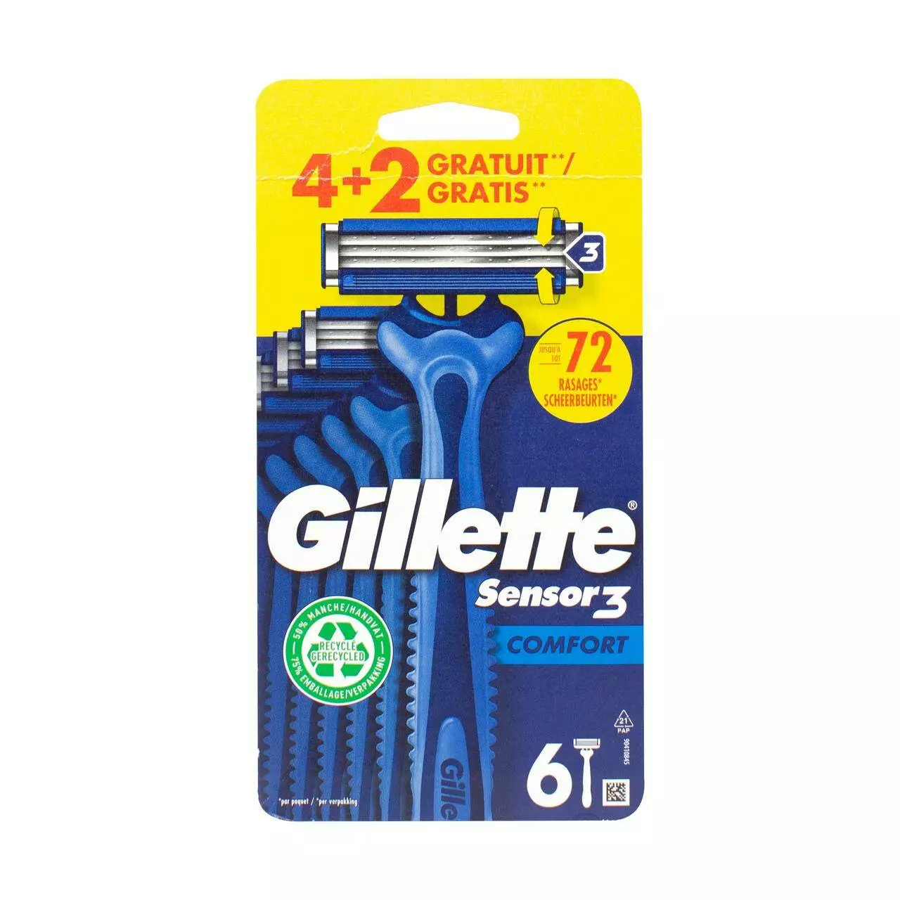 Gillette Sensor 3 одноразові бритви для гоління чоловічі 4+2 шт.
