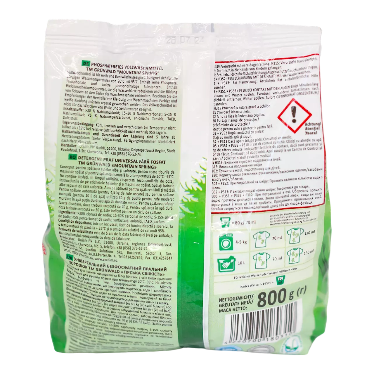 Grunwald Порошок для прання універсальний Гірська свіжість Eco 800 г