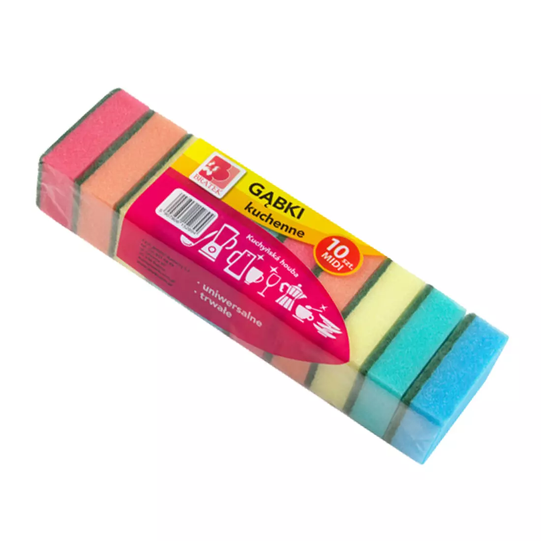 Губки для посуду MIDI - виготовлені з міцного, щільного поролону та абразивного шару, призначені для миття сильно забруднених поверхонь. Мочалки MIDI ідеально підходять для чищення каструль і посуду. Їх можна використовувати сухим і мокрим способом. Застосування додаткових хімікатів не потрібно. Акуратні розміри дозволяють легко чистити склянки та кухлі.