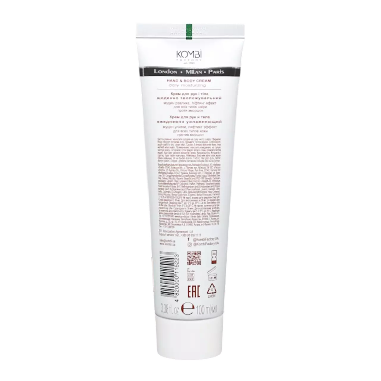 Об’єм 100 мл зручний для щоденного використання, забезпечуючи ефективне зволоження та догляд за шкірою рук і тіла."
