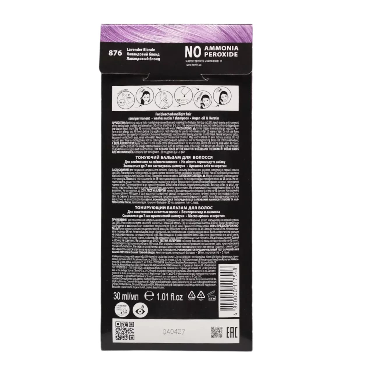 Об’єм 30 мл підходить для короткого або середнього волосся, даючи ніжний і яскравий лавандовий відтінок з природним ефектом."