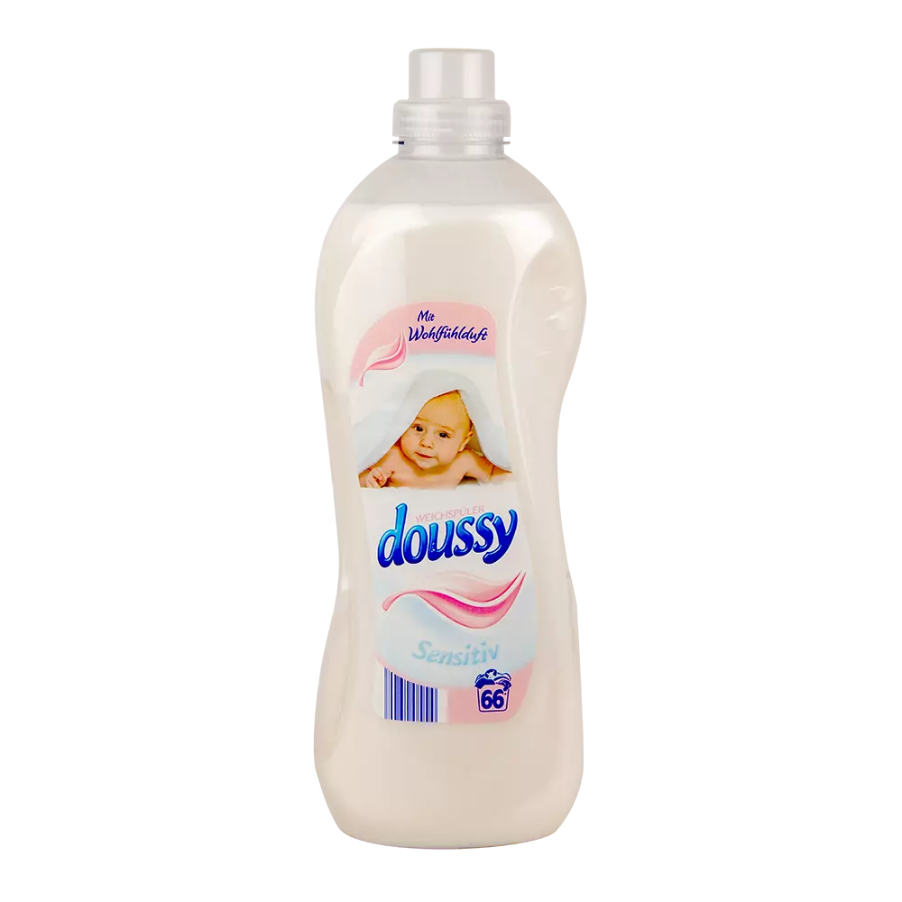 Doussy може бути використаний для всіх типів тканин, включаючи шерсть, шовк і віскозу. Дуже економний у використанні. Не містить фосфатів. Засіб можна застосовувати як для ручного, так і для машинного прання.