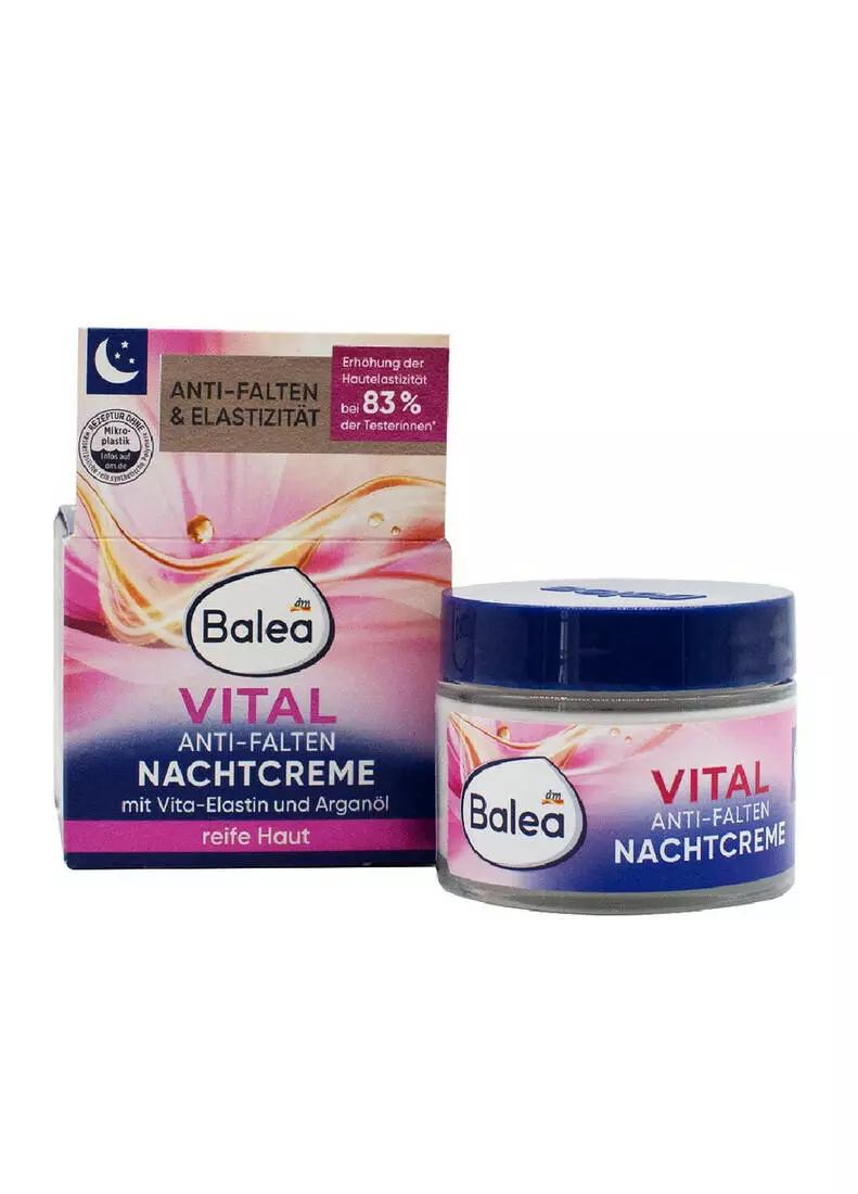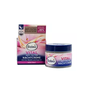 Нічний крем від зморшок Balea Vital підтримує власний процес оновлення шкіри та регенерацію протягом ночі. Зморшки помітно зменшуються, а якість шкіри підвищується.