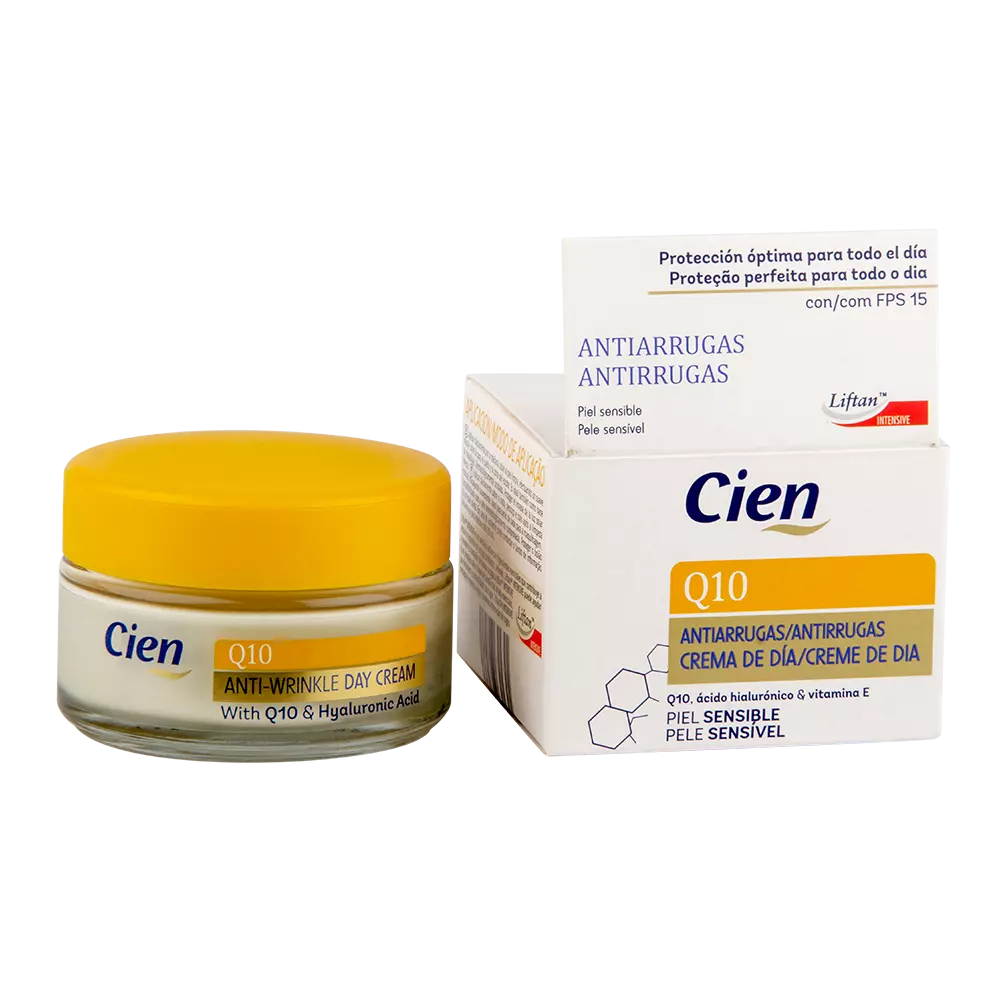 Крем Cien для обличчя проти зморшок Q10 денний є незамінним засобом в боротьбі з віковими змінами шкіри обличчя. Він відмінно підходить для всіх типів шкіри і особливо рекомендований тим, у кого вже чітко видно перші ознаки мімічних зморшок. Активні компоненти в поєднанні з гіалуроновою кислотою і Q10 запускають процеси природного відновлення пружності шкірного покриву. Також вони заповнюють і розгладжують як дрібні, так і великі зморшки і не допускають появи нових недосконалостей. Вітамін Е, що входить в цей чудодійний крем, надає потужний зволожуючий ефект, після чого шкіра обличчя набуває більш свіжий зовнішній вигляд.