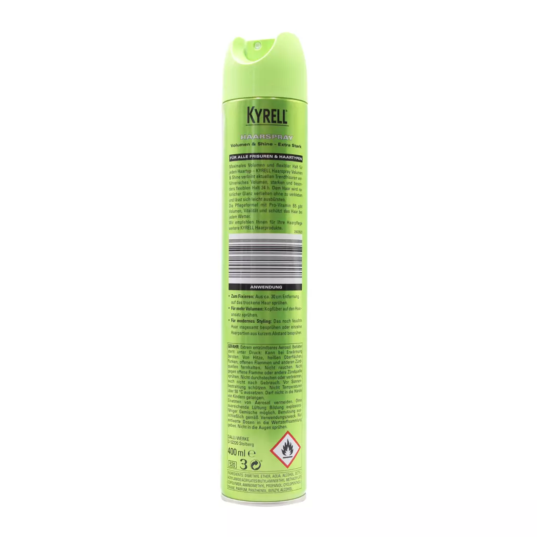 Даний косметичний засіб порадує вас тривалою і надійною фіксацією, стійкою до потрапляння вологи. Навіть найскладніші витвори перукарського мистецтва надовго збережуть свою форму завдяки лаку для волосся сильної фіксації Kyrell Volume & Shine.