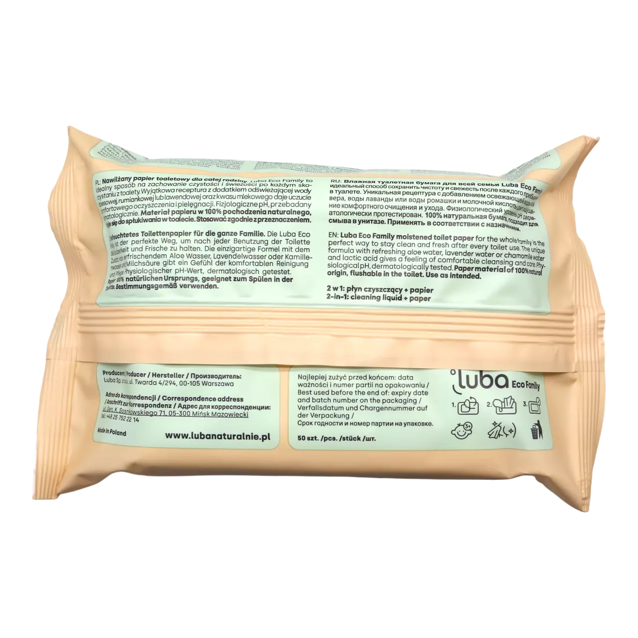 Luba ECO Family вологий туалетний папір із клапаном із лавандовою водою 50 шт.