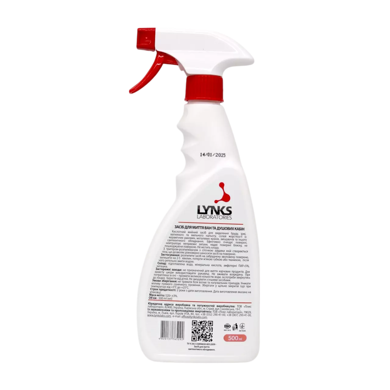 Lynks Laboratories Засіб для миття ван та душових кабін, 500 мл –