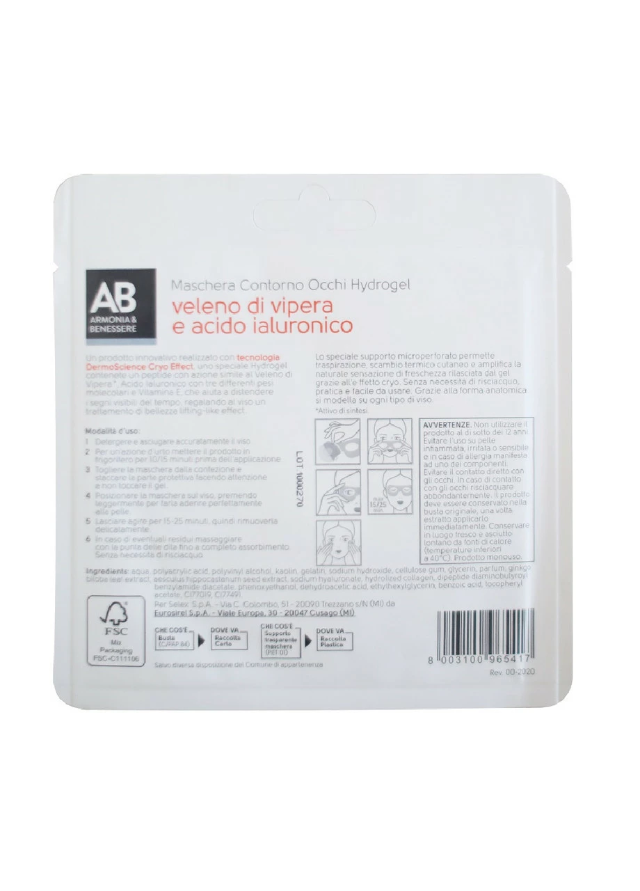 Маска для контуру очей Armonie di Bellezza гідрогелева ефект підтяжки з гіалуроновою кислотою 1 шт