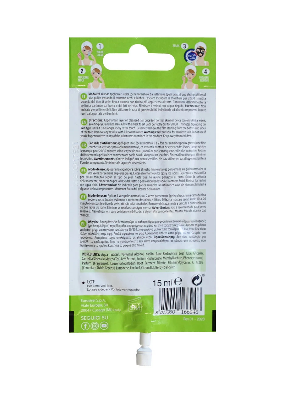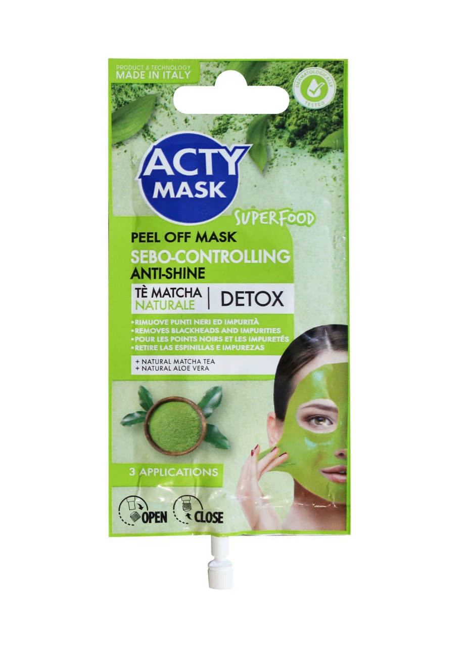 Детокс пілінг-маска для обличчя Acty Mask Peel Off Detox з натуральним чаєм матча та алое вера видаляє забруднення та чорні крапки з обличчя. Регулює виділення сальних залоз, усуває та запобігає появі блиску на обличчі протягом дня, залишає шкіру чистою та свіжою.