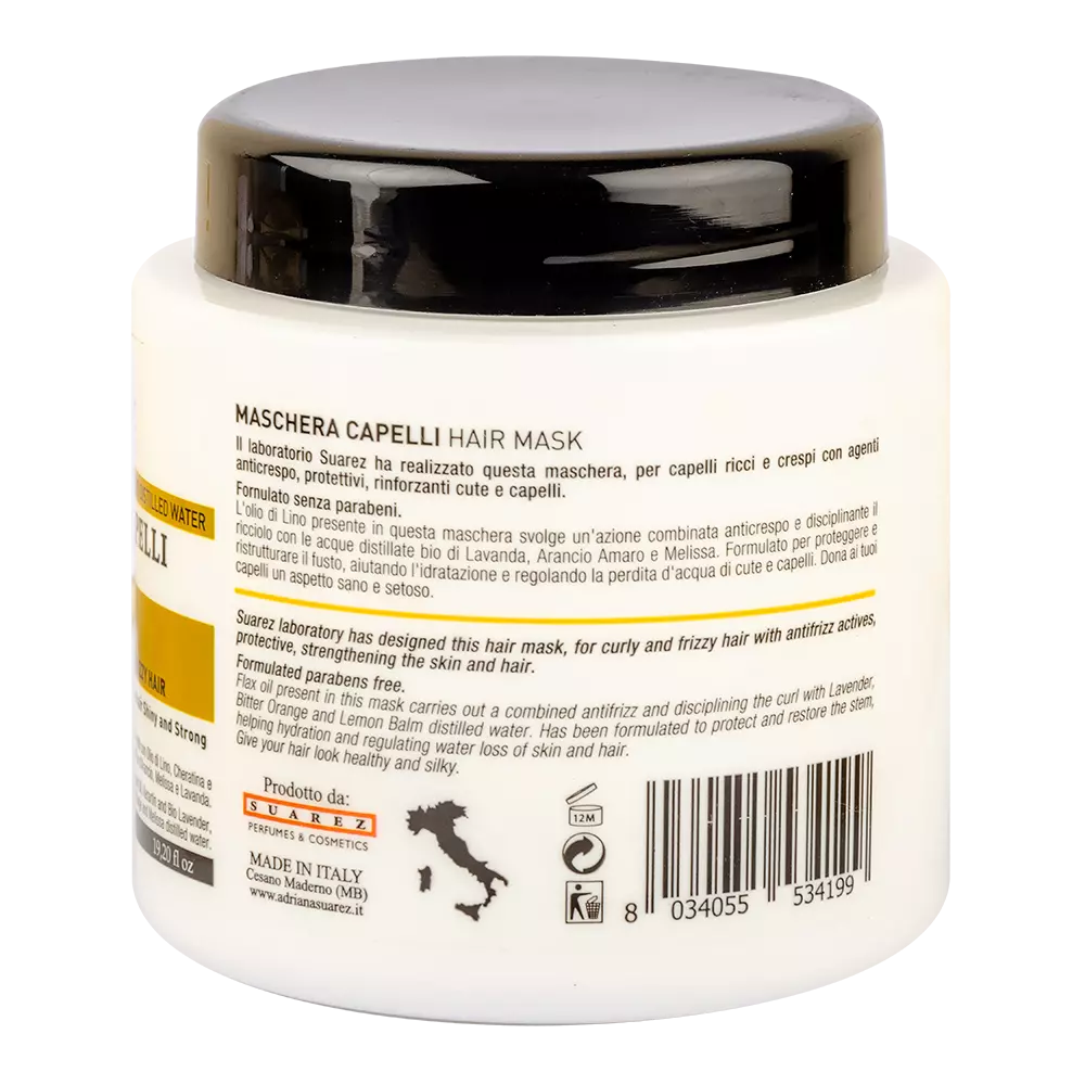 Професійна маска для кучерявого волосся, виготовлена на основі гідролата квітів гіркого апельсина, меліси і лаванди. Містить олію жожоба, кератин і рослинні екстракти. За допомогою цих складових маска надає волоссю гладкості, еластичності і блиску. Захищає пористе волосся від надмірної пухнастості у вологу погоду. Запобігає ламкості і пошкодженню волосся. Підходить як для професійного, так і для домашнього догляду за волоссям. Для більш вираженого ефекту рекомендується застосовувати в комплексі з шампунем та бальзамом з цієї ж серії.