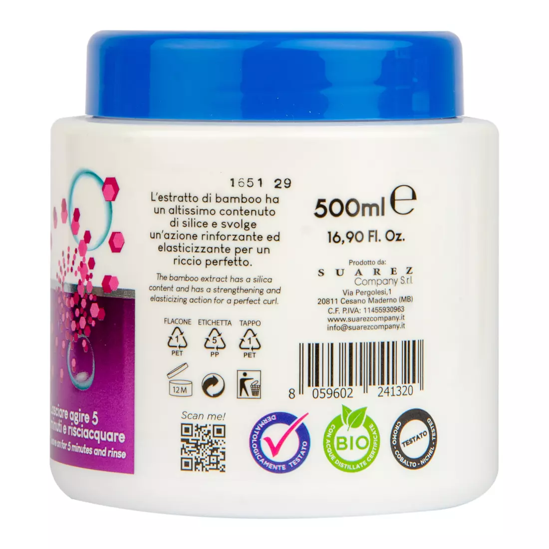 Маска для кучерявого волосся містить екстракт бамбука, який має зміцнюючу та еластичну дію для ідеальної завивки волосся. Після використання волосся насичується вологою і стає ідеально хвилястим.