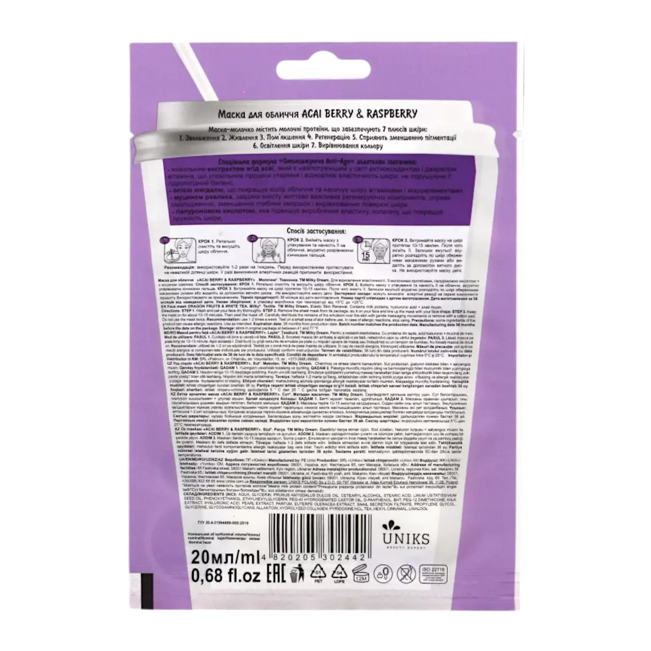 Milky Dream Маска для обличчя тканинна Acai berry & Raspberry 20 мл