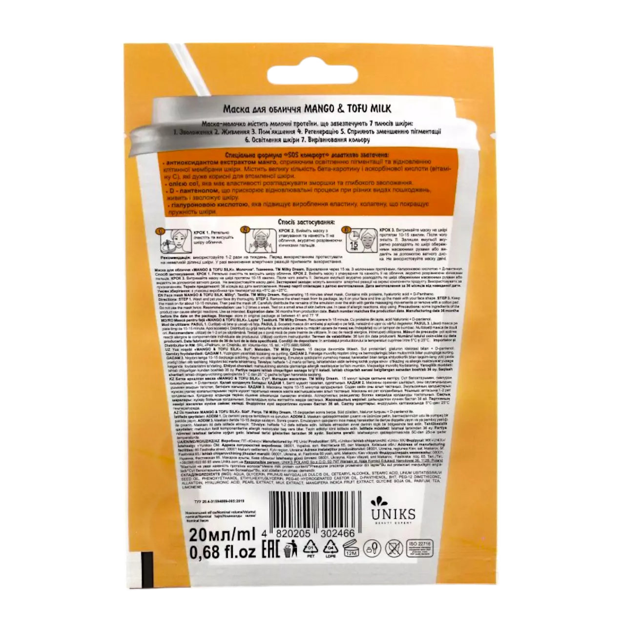 Milky Dream Маска для обличчя тканинна Mango & Tofu Milk 20 мл — це