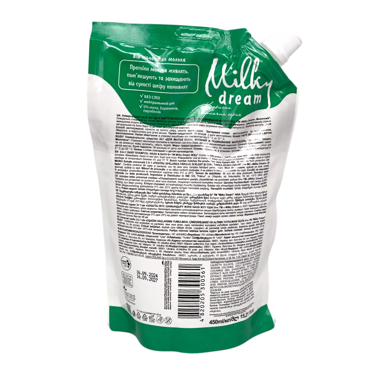 Milky Dream Універсальний засіб 3в1 Для купання малюків 450 мл (запаска)