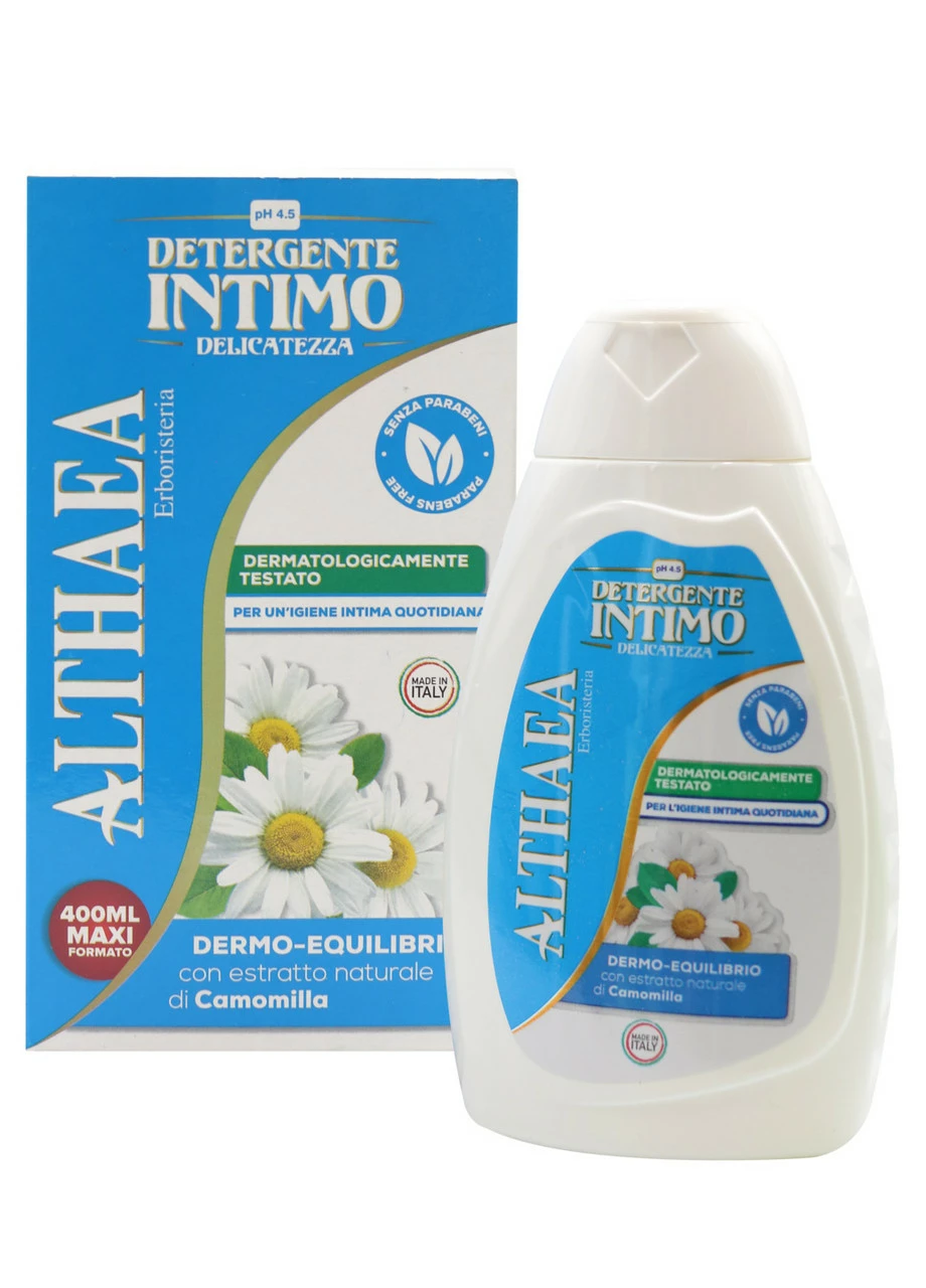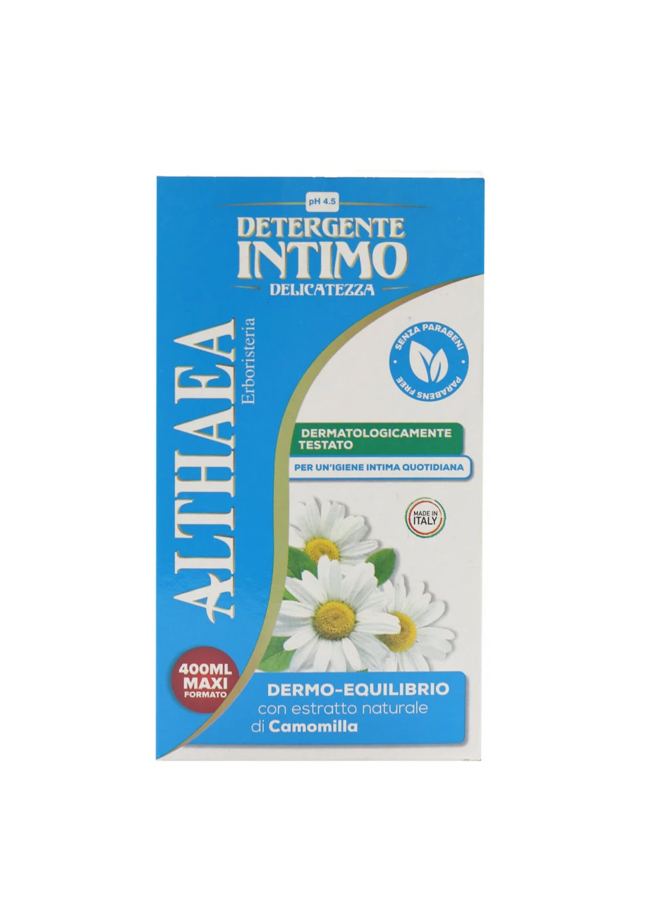 Althaea Intimate, завдяки збалансованому складу, багатому пом’якшувальними компонентами, такими як рослинний гліцерин і натуральні екстракти ромашки, підходить для щоденного очищення інтимних зон, підтримуючи фізіологічний баланс шкіри.