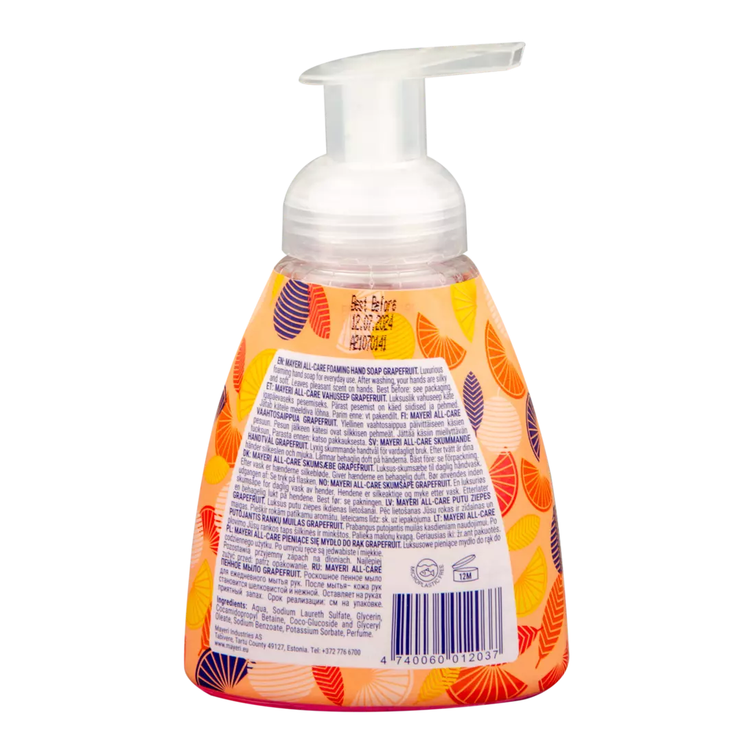 Пінне мило-мус для рук з ароматом грейпфрута для щоденного використання. Після миття ваші руки стають шовковистими та м'якими. Залишає приємний аромат на руках. Продукт має нейтральний для шкіри рівень рН і містить інгредієнти, які пом'якшують і підтримують природний баланс вологості шкіри.