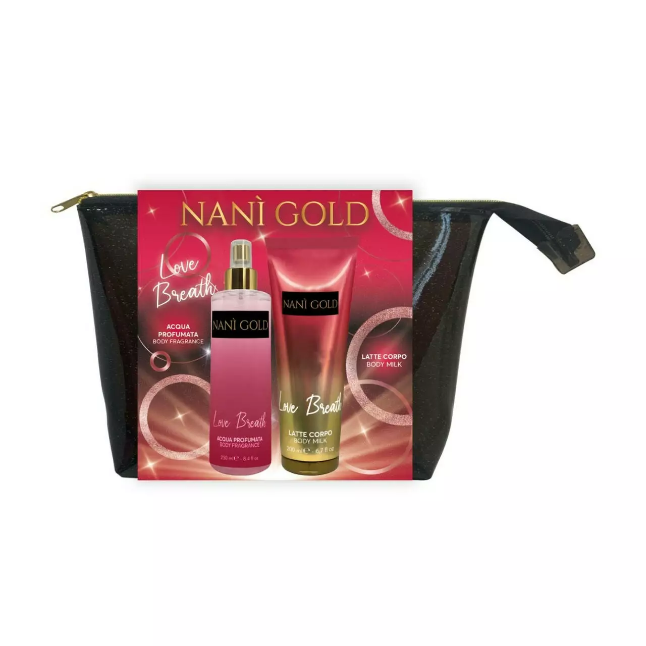 Nani Gold набір подарунковий Love Breath (спрей д/тіла 250мл, молочко д/тіла 200мл,косметичка)
