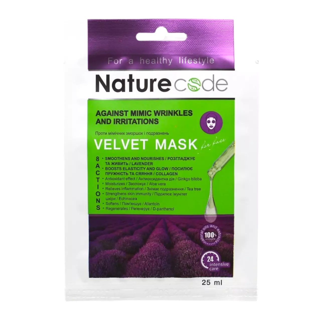 Nature Code Маска для обличчя тканинна проти зморшок і подразнень Лаванда 25 мл