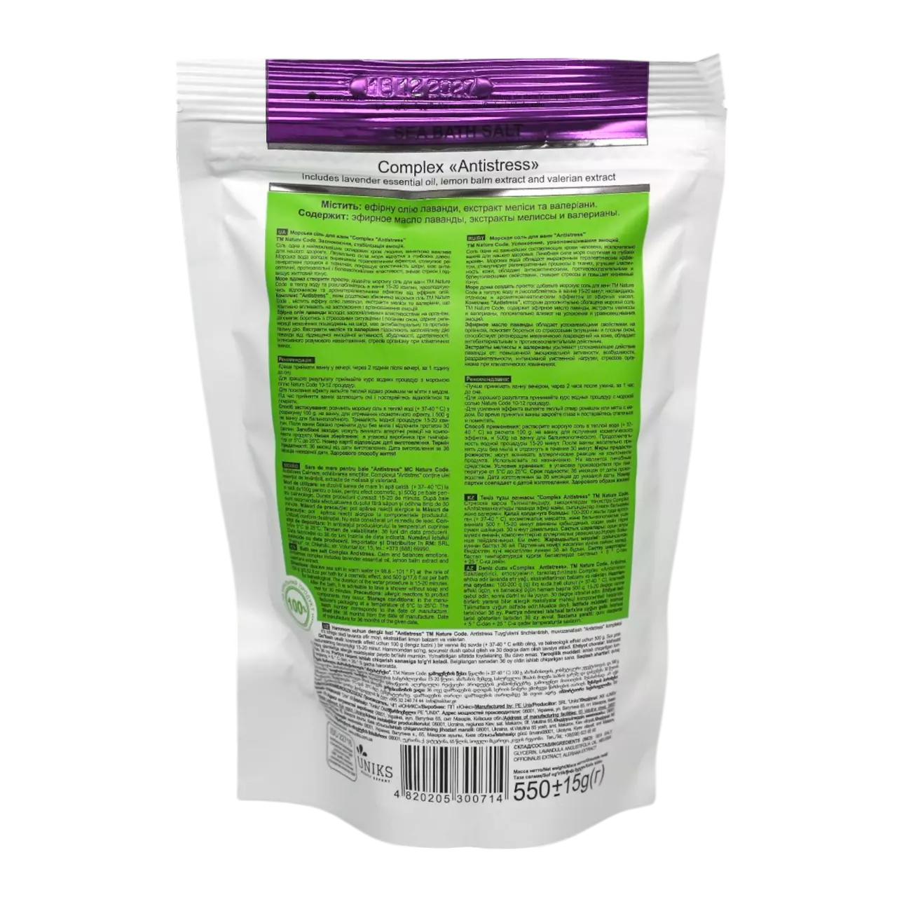 Nature Code Сіль для ванни морська Antistress 550 г — це морська