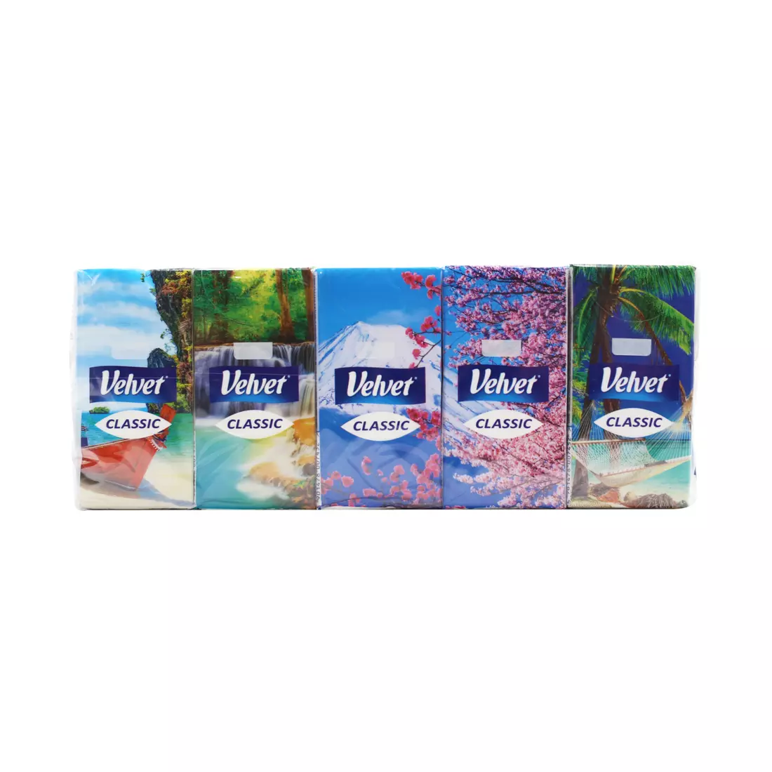 Паперові тришарові хусточки Velvet Classic не тільки дуже міцні, але ще й неймовірно м'які. Вони дбайливо піклуються про шкіру обличчя, щоб ви завжди відчували себе комфортно і впевнено, незалежно від маленьких негараздів, які можуть статися, коли ви в дорозі, займаєтеся спортом або поспіхом наносите макіяж. Хусточки в різних дизайнах на будь-який смак.