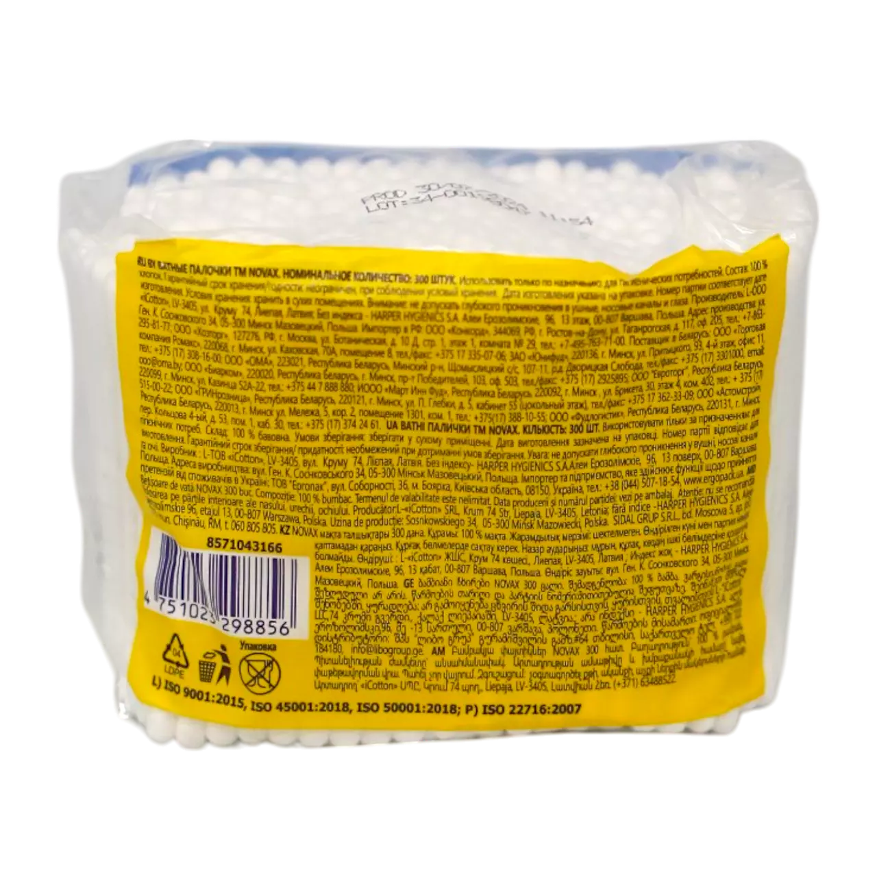 Ватні палички Novax (300 шт) мають м'які, делікатні кінці, що